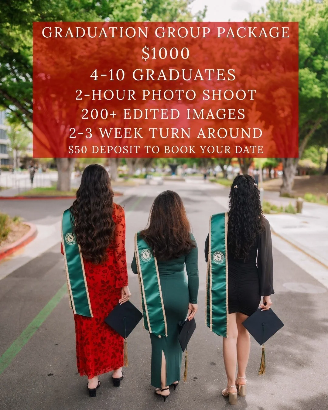 GET YOUR EDITS WITHIN 24-36 HOURS FROM PHOTO SHOOT FOR A RUSH DELIVERY! SKIP THE LINE AND GET YOUR PHOTOS BEFORE GRADUATION!!!